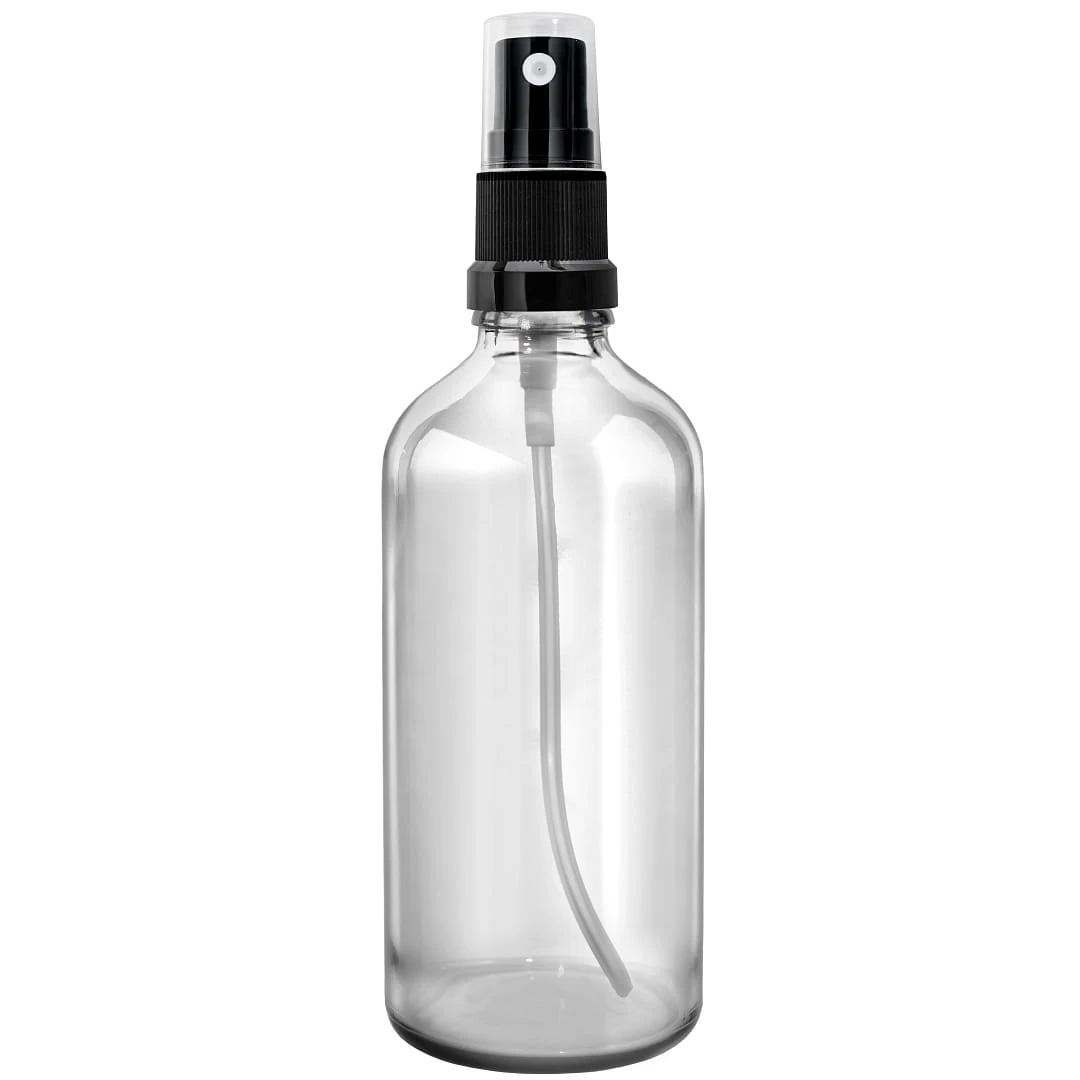 Butelka szklana 100ml bezbarwna z atomizerem czarnym x10