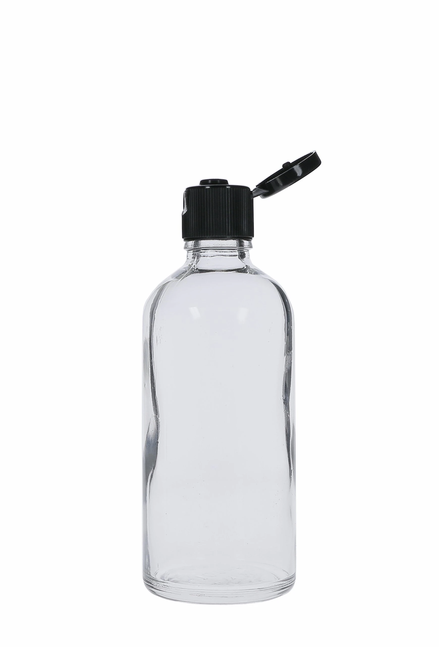 Butelka szklana 100ml bezbarwna z nakrętką flip top czarną