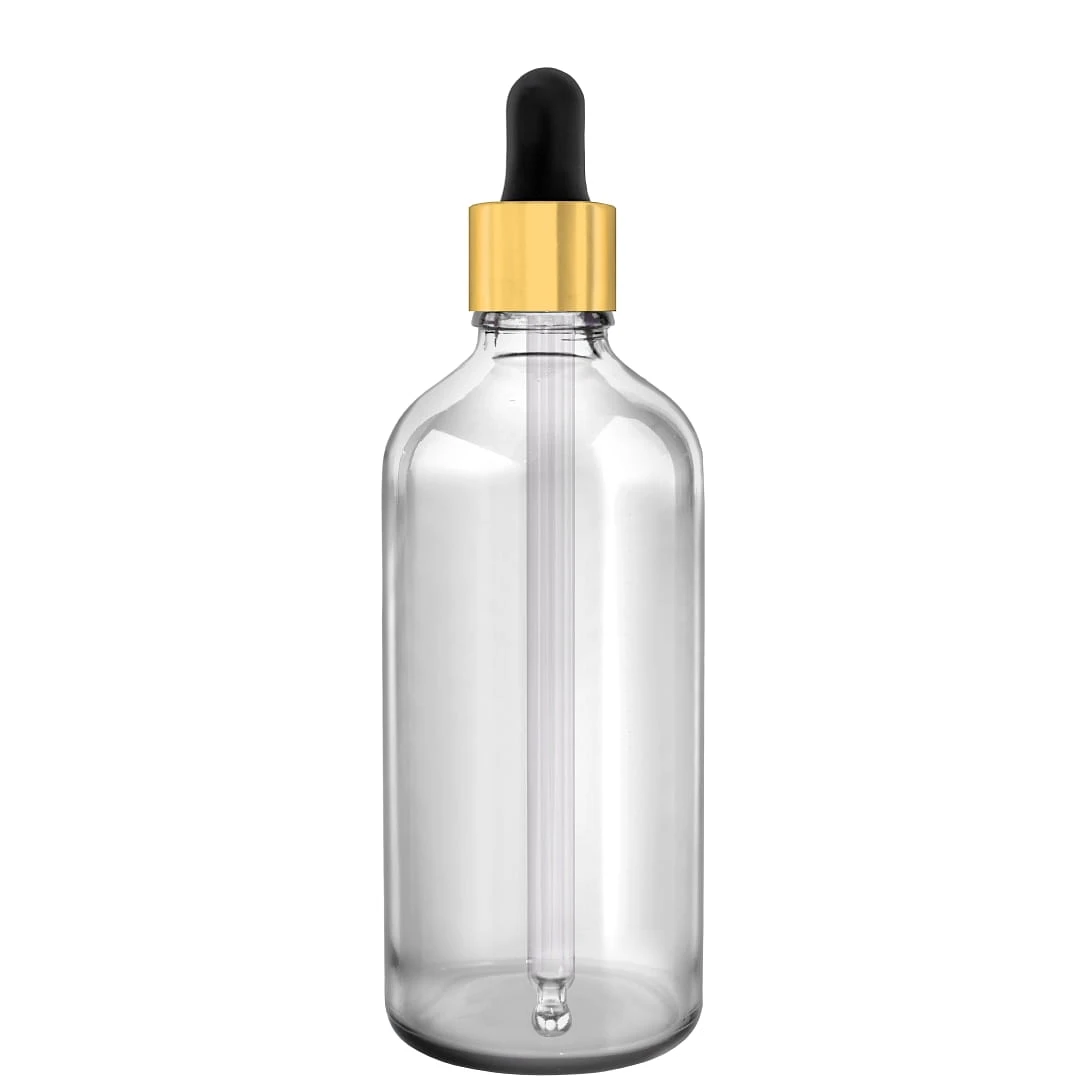 Butelka szklana 100ml bezbarwna z pipetą złoto czarną