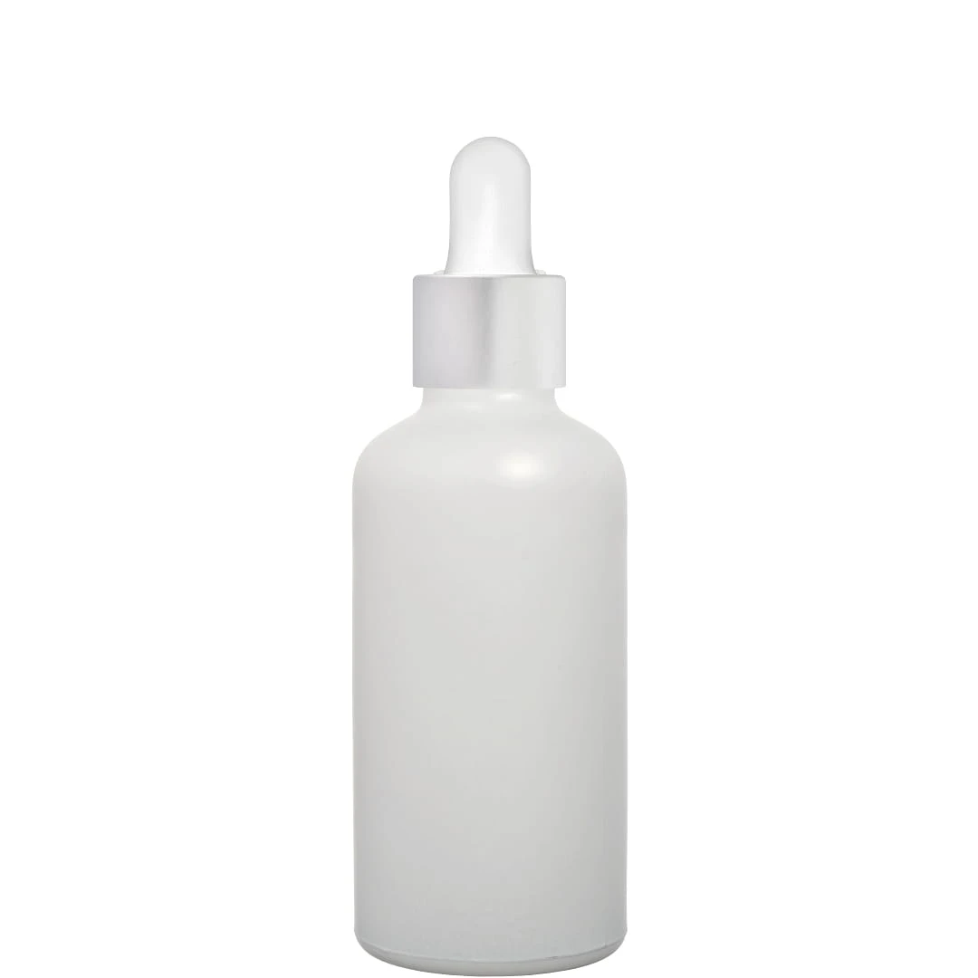 Butelka szklana 100ml biała matowa z pipetą srebrną