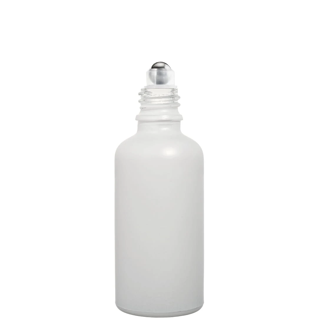 Butelka szklana 100ml biała matowa z roll on + nakretka