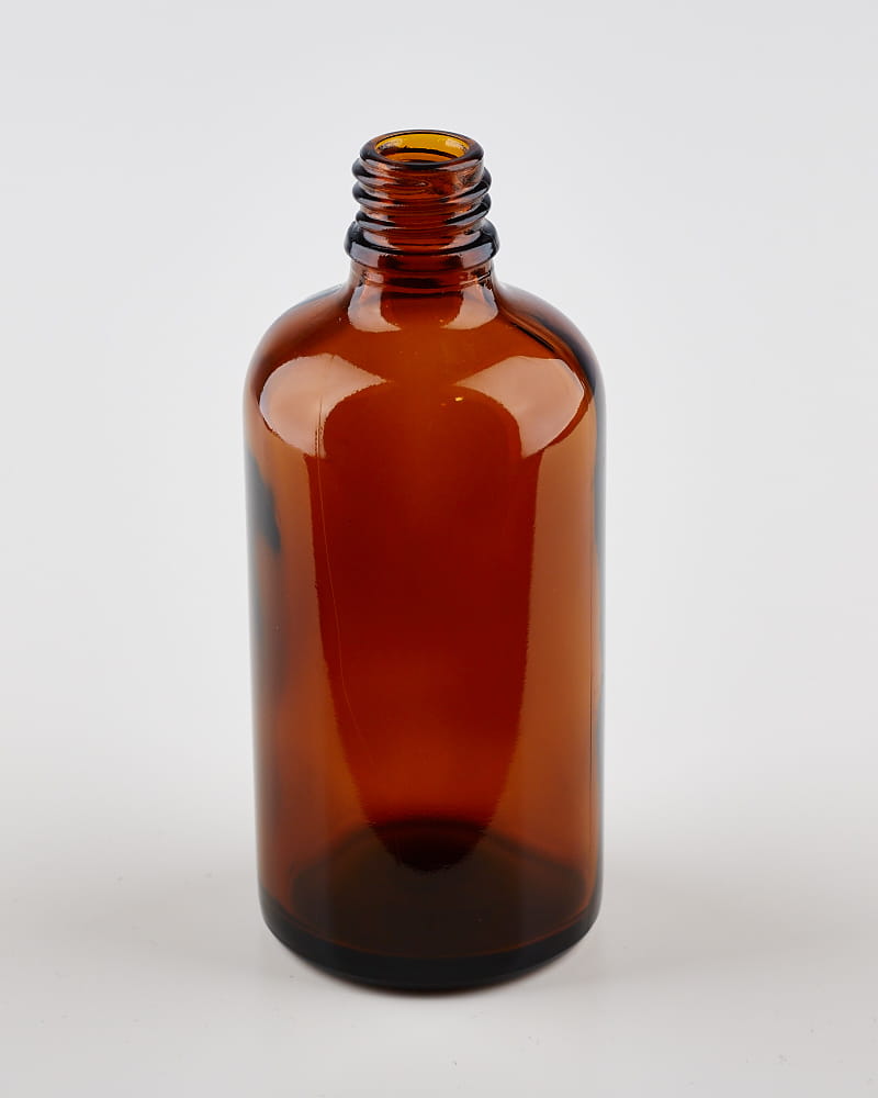 Butelka brązowa o pojemności 100 ml wykonana ze szkła.