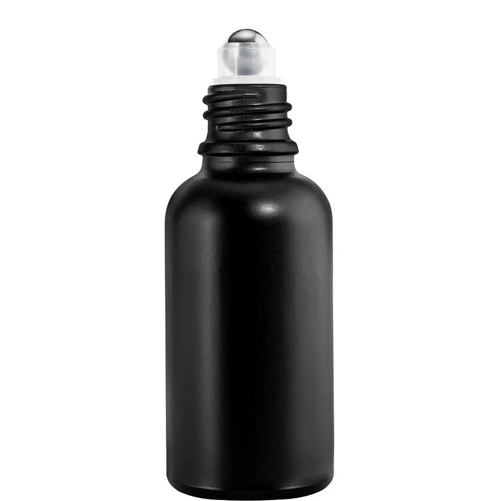 Butelka szklana 100ml czarna matowa z roll on + nakretka