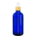 Butelka szklana 100ml niebieska z pipetą złotą białą