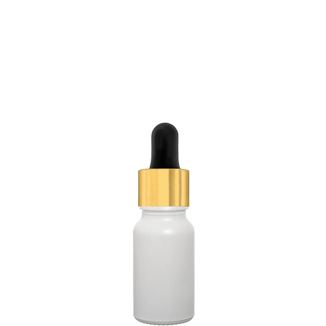 Butelka szklana 10ml biała matowa z pipetą złoto czarną