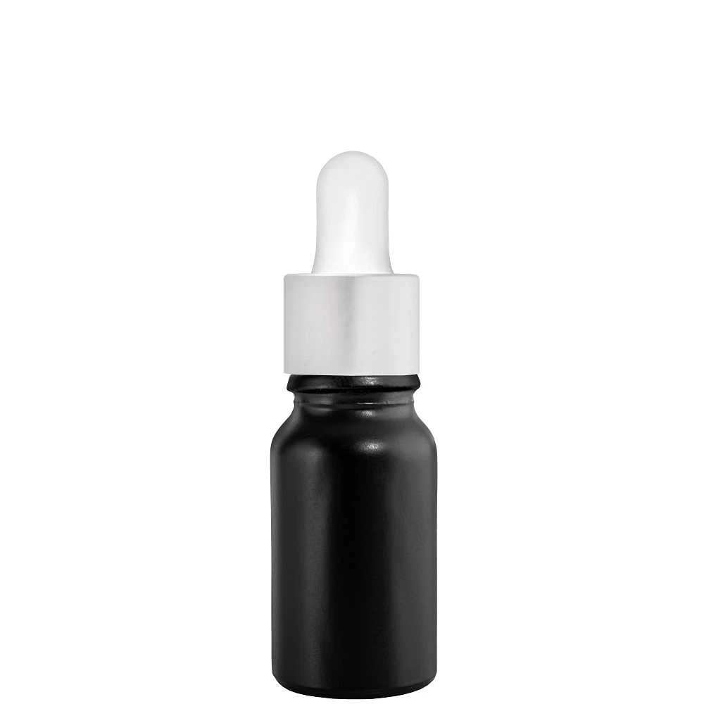 Butelka szklana 10ml czarna matowa z pipetą srebrną