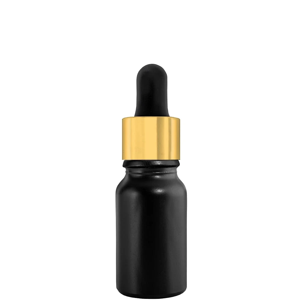 Butelka szklana 10ml czarna matowa z pipetą złoto czarną