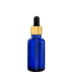 Butelka szklana 30ml niebieska z pipetą złoto czarną