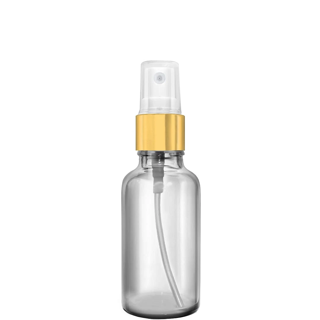 Butelka szklana 50ml bezbarwna z atomizerem złotym