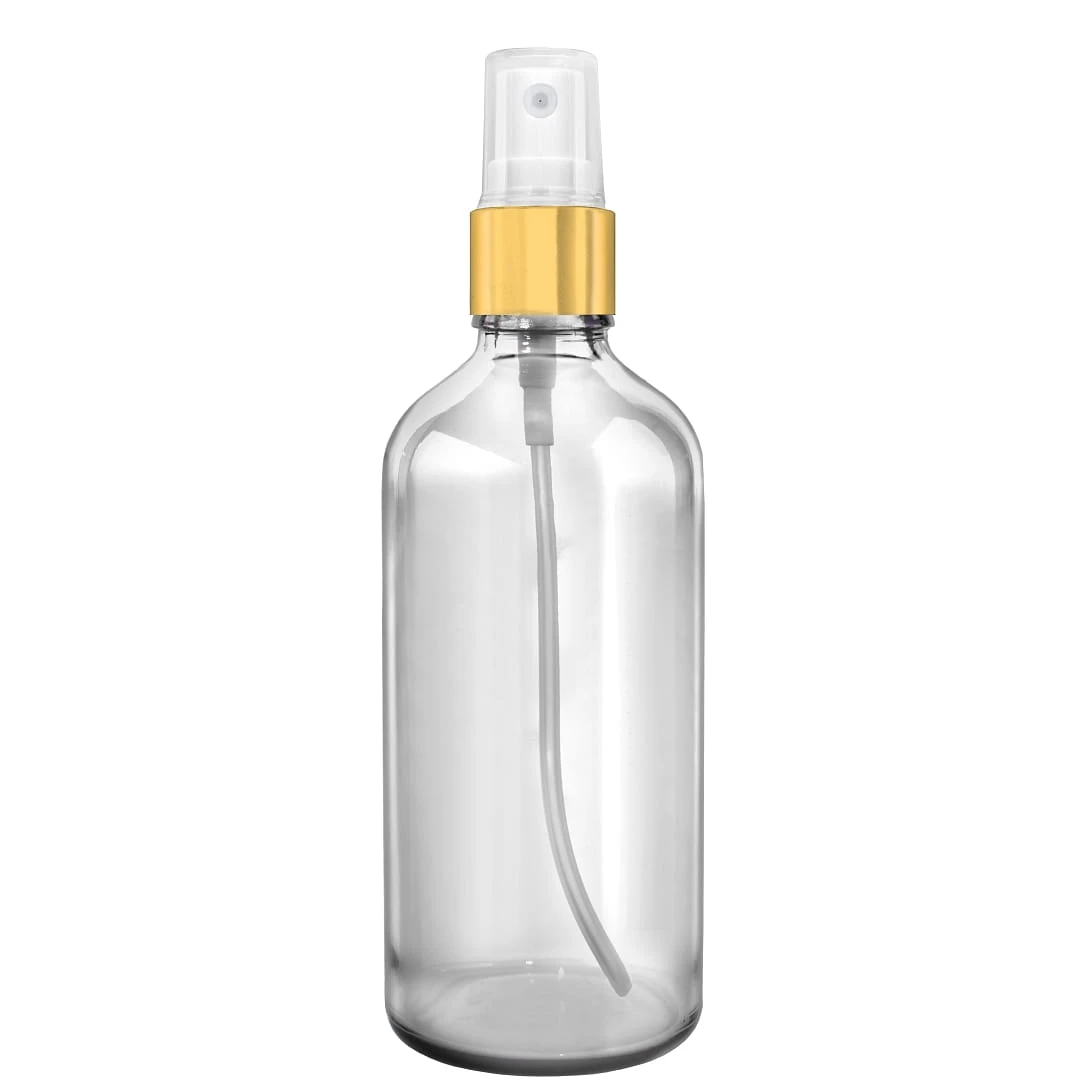 Butelka szklana bezbarwna 100ml z atomizerem złotym