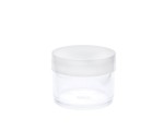 Wysokiej jakości słoiczek o wysokiej trwałości i przeźroczystości, z białą zakrętką i przekładką uszczelniającą, wykonany z tworzywa PE