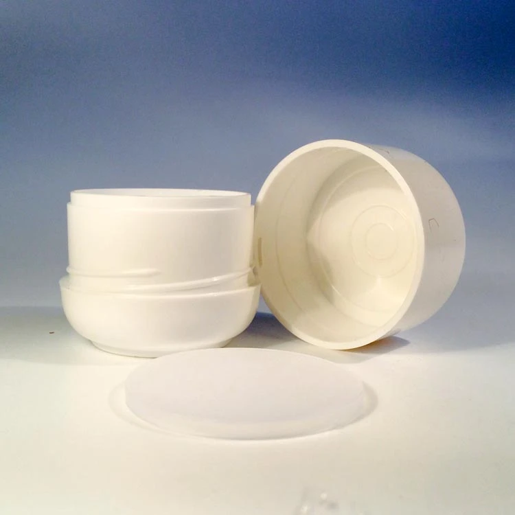 Wysokiej jakości słoiczek 50ml o wysokiej trwałości biały, z białą zakrętką i przekładką uszczelniającą.
