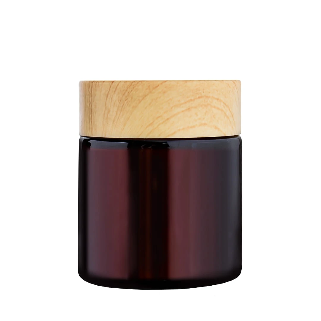 Słoik kosmetyczny 120 ml – brązowe szkło z nakrętką imitującą bambus