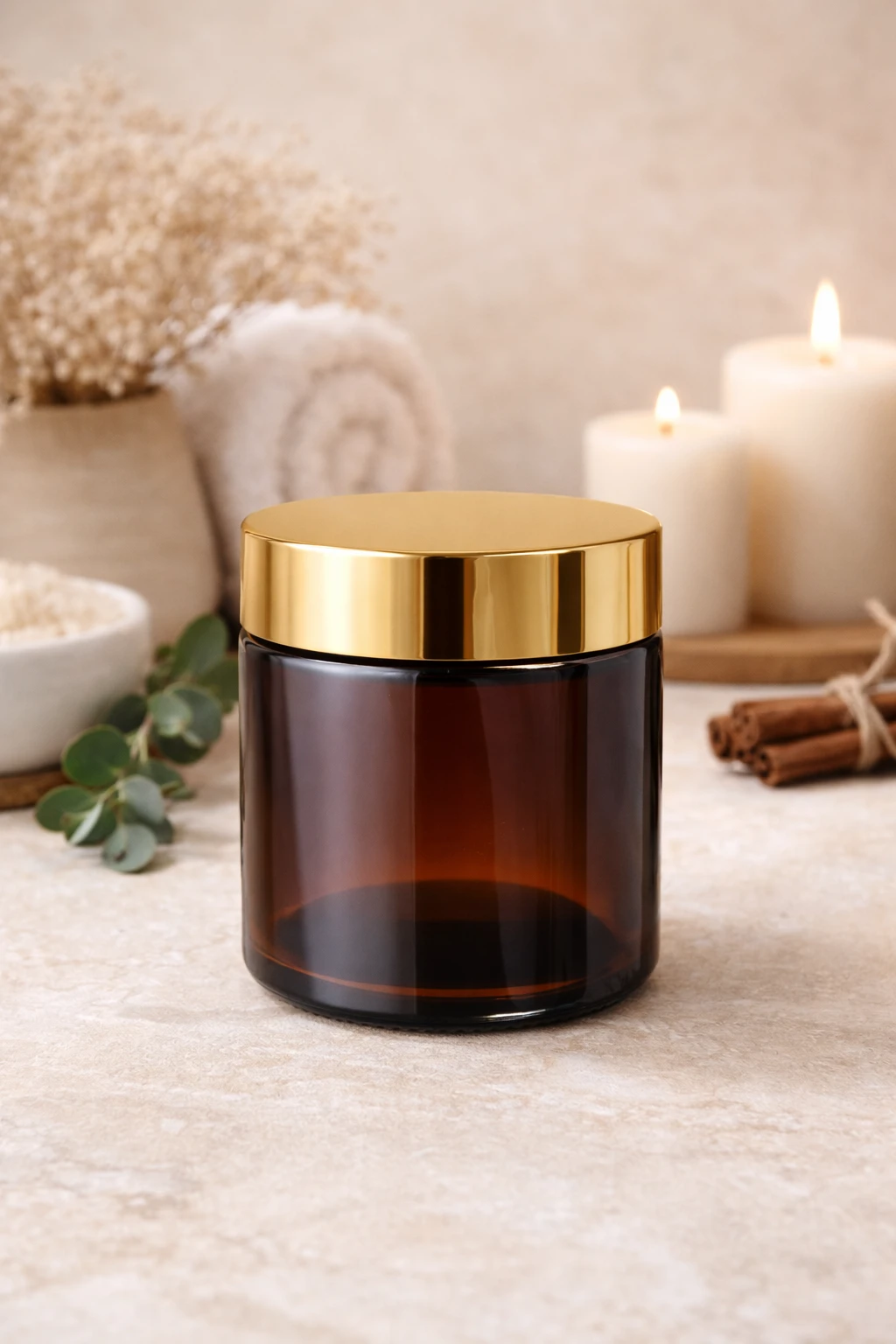Słoik kosmetyczny 120 ml – brązowe szkło ze złotą nakrętką