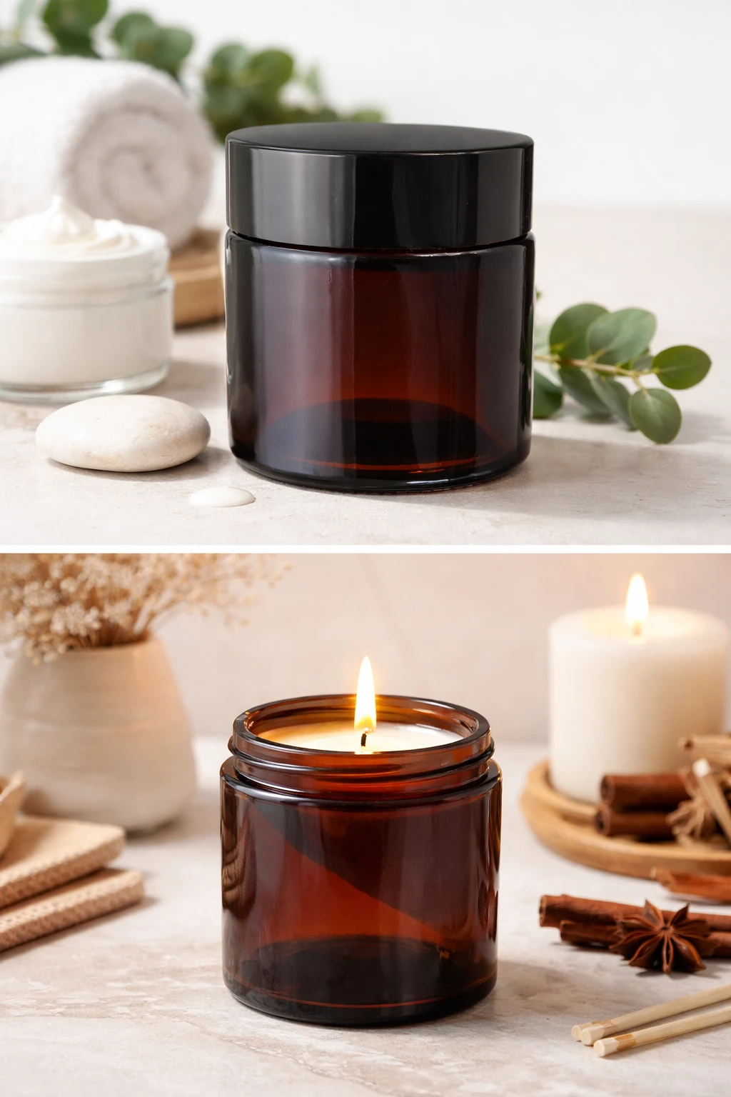 Zestaw 5 słoików szklanych brązowych 120 ml z czarną nakrętką to praktyczne i eleganckie opakowania przeznaczone do przechowywania kremów, balsamów oraz kosmetyków naturalnych. Brązowe szkło typu amber pomaga chronić zawartość przed światłem, dzięki czemu kosmetyki dłużej zachowują swoje właściwości. Słoiki świetnie sprawdzają się również jako pojemniki do świec sojowych oraz świec zapachowych.