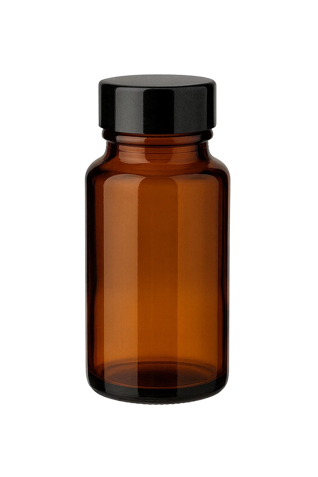 Słoik szklany brązowy typu PHARMA o pojemności 75 ml z gwintem 38/400 i czarną nakrętką to funkcjonalne opakowanie przeznaczone do zastosowań farmaceutycznych, suplementacyjnych oraz kosmetycznych. Wykonany z wysokiej jakości szkła amber, skutecznie ogranicza dostęp światła do przechowywanej zawartości.