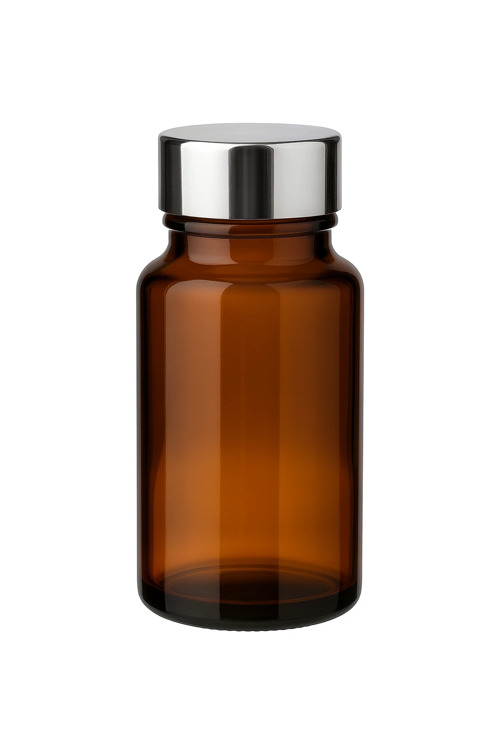 Słoik szklany brązowy typu PHARMA o pojemności 75 ml z gwintem 38/400 i srebrną nakrętką to funkcjonalne opakowanie przeznaczone do zastosowań farmaceutycznych, suplementacyjnych oraz kosmetycznych. Wykonany z wysokiej jakości szkła amber, skutecznie ogranicza dostęp światła do przechowywanej zawartości.